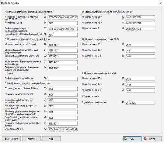 Observera att om du använder BLA för att ta ut underlaget till din svenska momsredovisning måste du se till att använda separata försäljningskonton som inte ingår i skattedeklarationsupplägget för försäljningen som omfattas av OSS.
