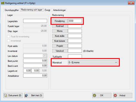 - Då programmet inte hanterar andra momsnivåer än de svenska kan du arbeta med momsartiklar för moms som redovisas inom OSS, dvs artiklar som endast påverkar momsen. Lägg upp en vanlig artikel som du anger momskod 7 – Momsartikel på. Du kan också ange ett momskonto som försäljningskonto (inte momskonto) så kommer programmet att bokföra momsen korrekt.