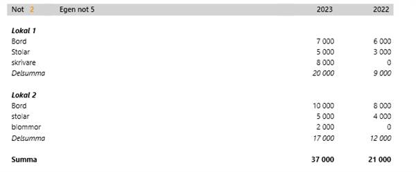 Observera att denna enbart bör användas för frivillig information i aktiebolag K2. Du bör alltid använda de standardiserade noterna (exempelvis Byggnader och mark m.fl.) för obligatoriska upplysningar vid digital inlämning!