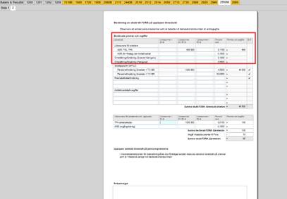 På sidan 2 i bilagan fyller du högst upp i underlaget ( lönesummor för arbetare) för beräkning av skuld till FORA på upplupen löneskuld. De delar av avgiften som är underlag för särskild löneskatt är som standard i bockat. Om du använder egna rader och fyller i manuellt, kom ihåg att bocka SLP om det avser pension. Längst ner fyller du i underlaget för tjänstemän. Observera att alla belopp från sidan 2 överförs till sidan 1 automatiskt.