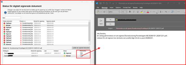 Vi har lagt till en kolumn som heter Signera senast. Det blir lättare att hålla koll om man behöver skicka påminnelse till en mottagare som fortfarande inte har signerat. Klicka på ikonen under påminnelse så öppnas Outlook. Vi har lagt in en standardtext men ni kan enkelt ändra texten om ni vill.