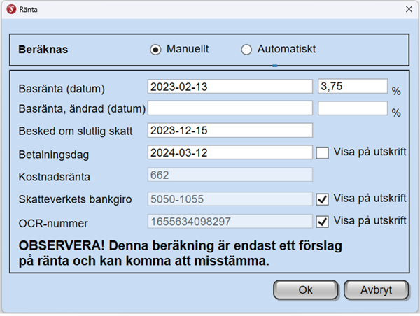 Från och med 1 februari höjs basräntan till 3,75 procent. Detta gör att räntan för kvarskatt blir högre. Detta har vi tagit hänsyn till fr.o.m. deklarationsperiod 3.