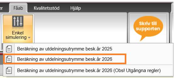 För dig som snabbt vill sätta dig in i de nya beräkningsreglerna enligt 3:12-reglerna för gränsbeloppet från 2026, rekommenderar vi bilagan Beräkning av utdelningsutrymme besk.år 2026. Den finns under menyn Fåab – Enkel simulering.